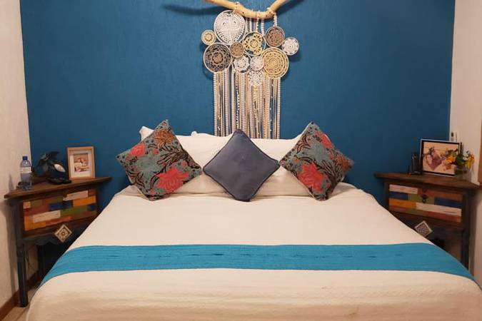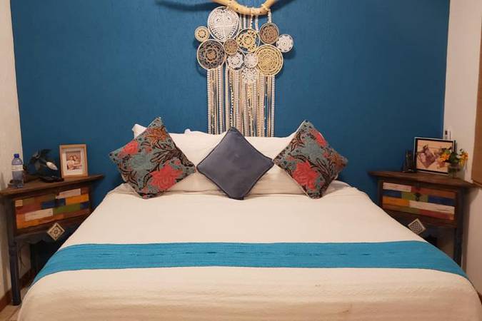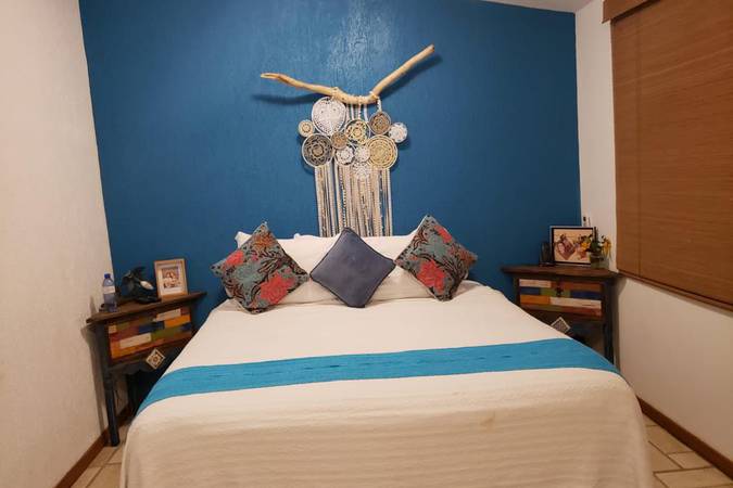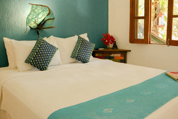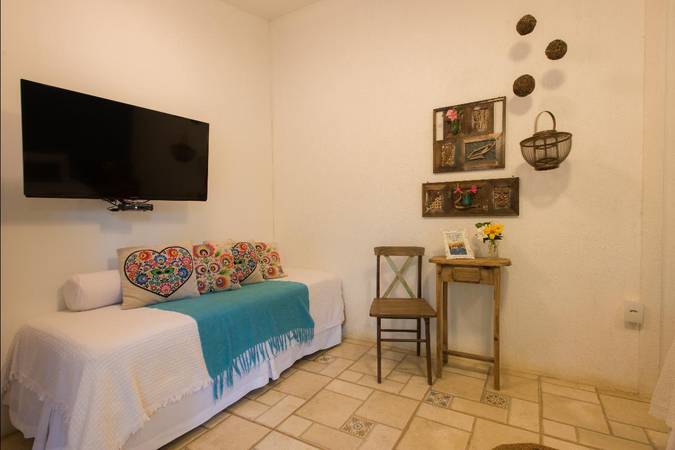 Localizado no térreo, o apartamento Beco Turquesa acomoda confortavelmente até 4 pessoas.